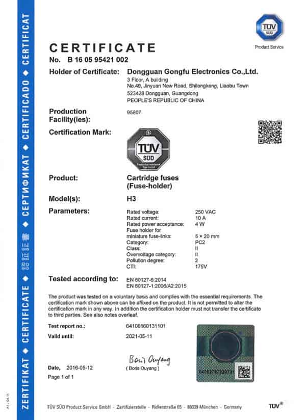 目前我們產品有:保險絲、保險絲座、汽車保險絲、汽車保險絲座、汽車保險絲盒及新能源汽車高,低壓熔斷器、充電樁熔斷器、綠色直流光伏熔斷器等,產品取得UL,cUL.TUV.CE.CQC等產品質量認證。